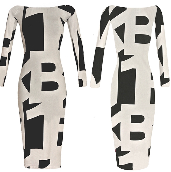 Description:Women's Sexy Slash Neck Long Sleeve Cocktail Party Bodycon Dress